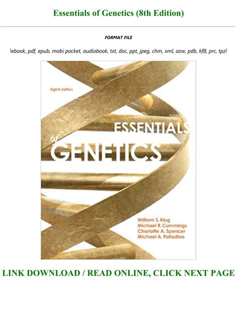 Read Online Download Essentials of Genetics 8th Edition PDF PDF online is a convenient and frugal way to read Download Essentials of Genetics 8th Edition PDF you love right from the comfort of your own home. Yes, there sites where you can get PDF "for free" but the ones listed below are clean from viruses and completely legal to use.
